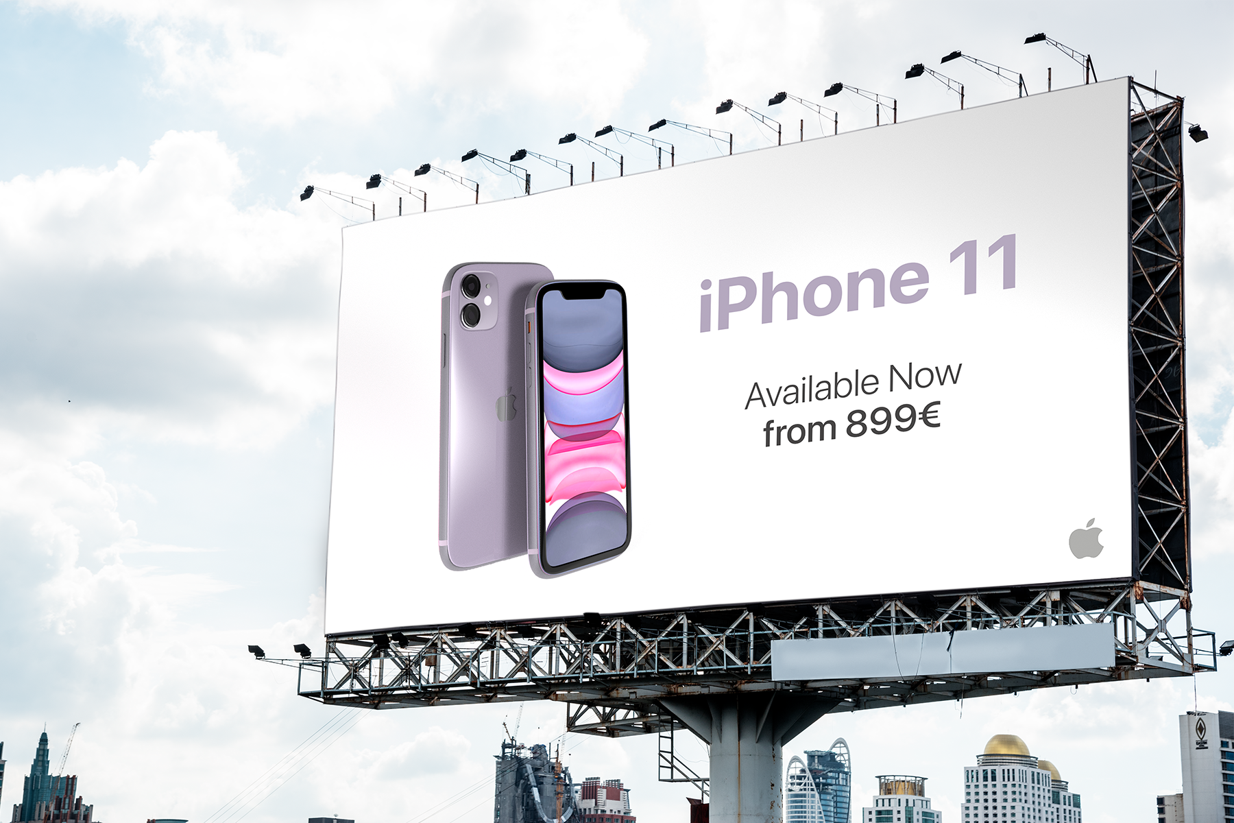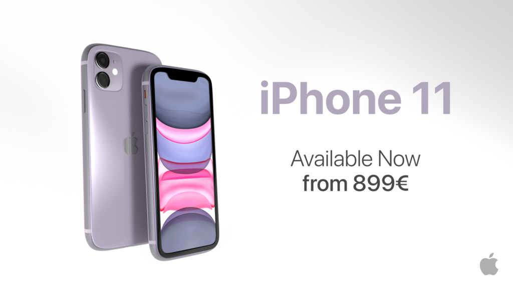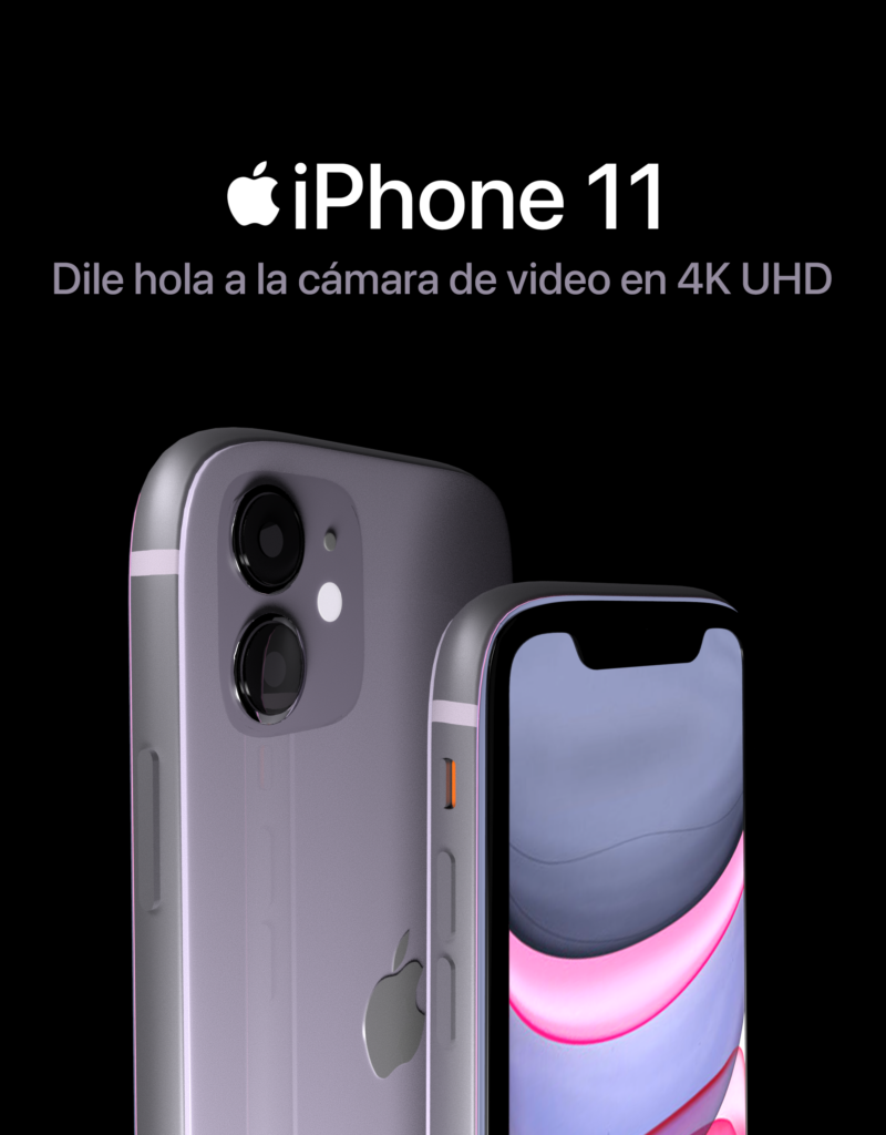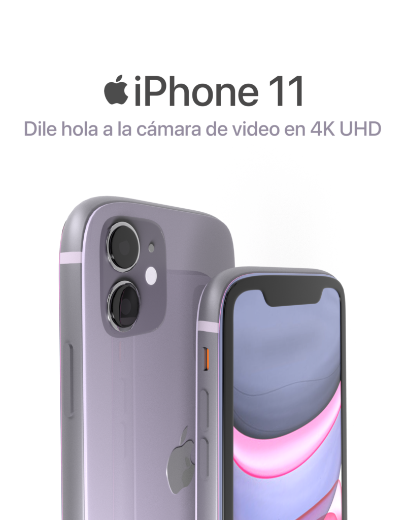 A continuación, con motivo de utilizar este modelado, junto con los renders e iluminaciones generadas, se desarrollaron cuatro propuestas de carteles publicitarios que anuncian el lanzamiento del iPhone 11 en color lila.